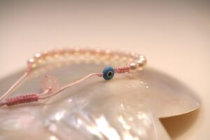 Ανάμεσα στα κοσμήματα μας, μπορεί κανείς να διαλέξει από μια τεράστια γκάμα Βραχιολιών κατάλληλα για το νεαρό της ηλικίας των παιδιών. Απλά διακριτικά βραχιολάκια με Μαργαριτάρια Ακόγια ή Γλυκού Νερού με κουμπώματα ασφαλείας είναι τα ιδανικά για τις κομψές κυρίες μας. Είμαστε σίγουροι ωστόσο πως θα λατρέψουν το Baby Akoya Bracelet Που είναι δεμένο με κορδονάκι σε ροζ χρώμα και αποτελείται από μικρά Ακόγια Μαργαριτάρια και δυο ματάκια χάντρες.