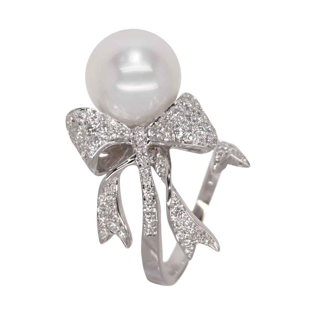 Η Τζένη Μπότση έχει συνδυάσει δύο δαχτυλίδια το ένα σε λευκό χρυσό με λευκά διαμάντια και μαργαριτάρι νοτίων θαλασσών και ένα δαχτυλίδι με δύο μαργαριτάρια Ταϊτής και ένα μαργαριτάρι νοτίων θαλασσών με λευκά διαμάντια σε ροζ χρυσό.
