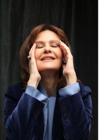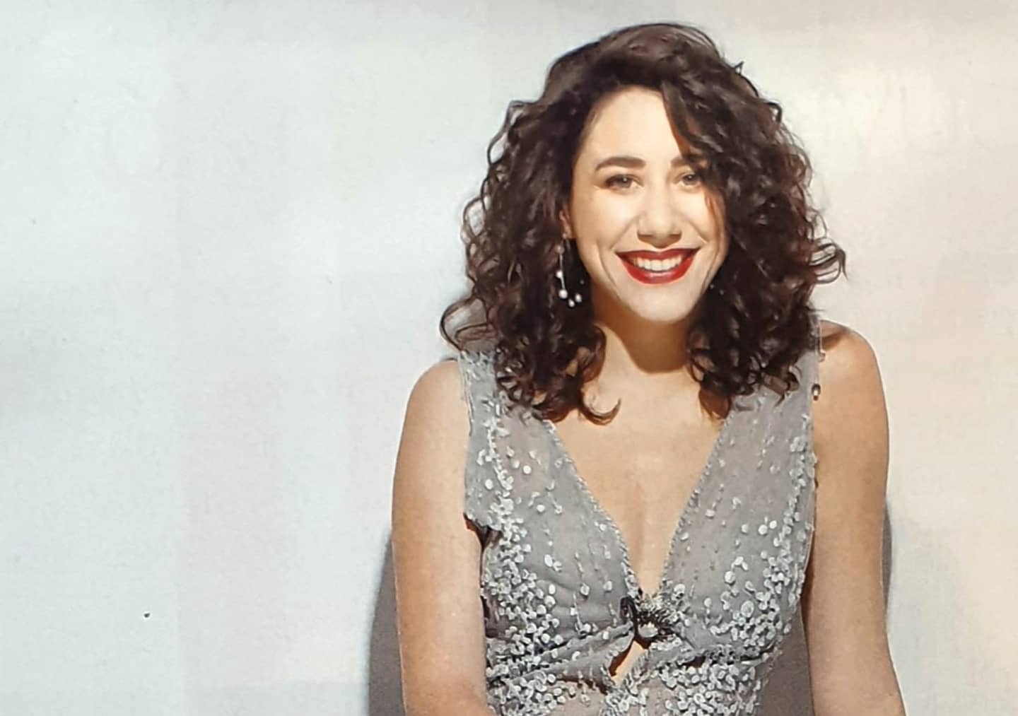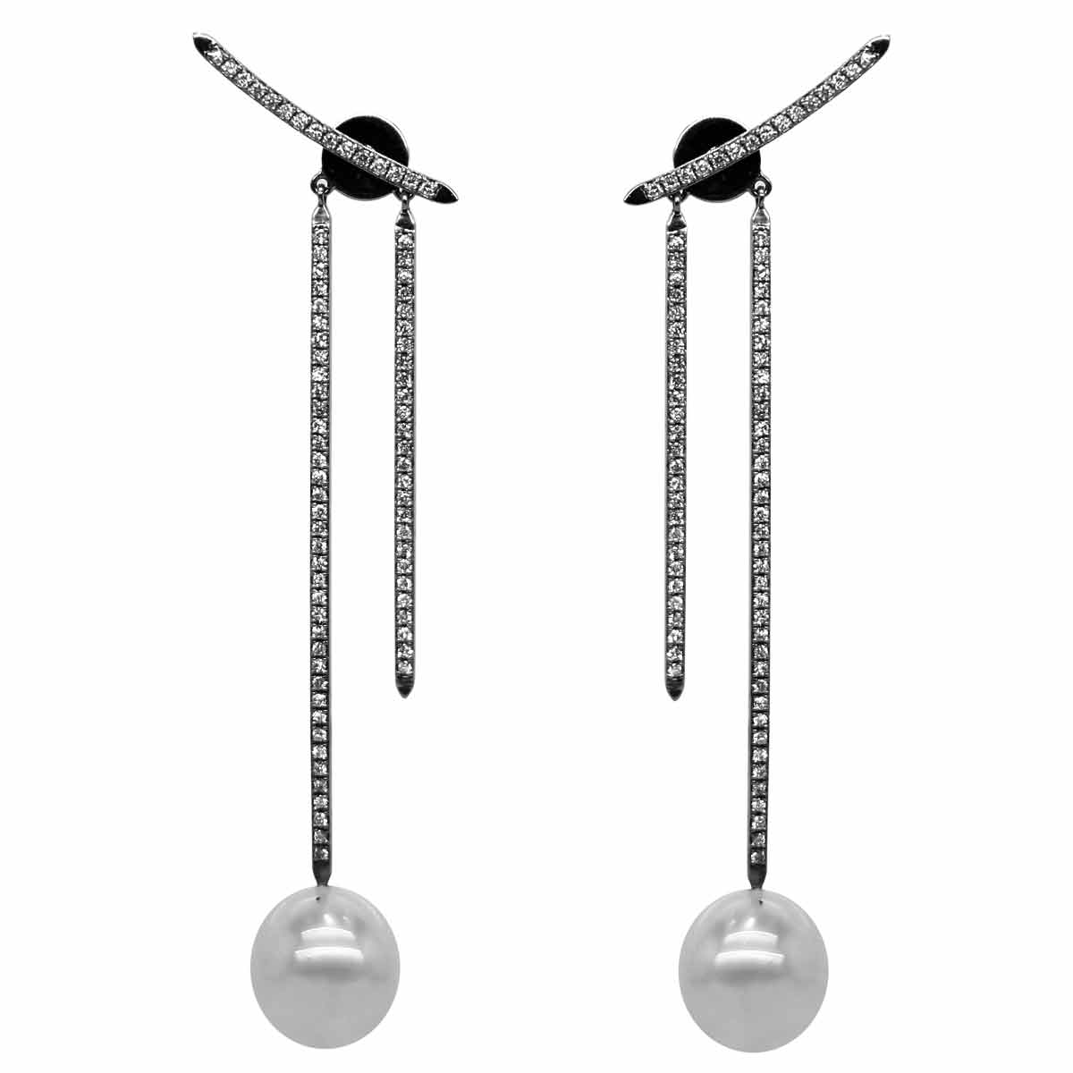 Η Μαρία Κίτσου φοράει ένα Μίνιμαλ και μοντέρνο στυλ Σκουλαρικιών από κίτρινο χρυσό 18Κ με γυαλιστερά Μαργαριτάρια Νοτίων Θαλασσών και λαμπερά Διαμάντια σε κοπή μπριγιάν.
