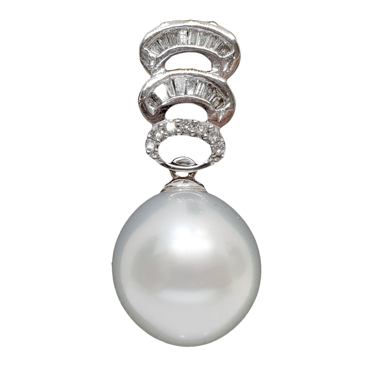 P069 – Brilliant Cut Diamonds 0,04Ct – Baguette Cut Diamonds 0,09Ct – South Sea Pearl 12,5mm