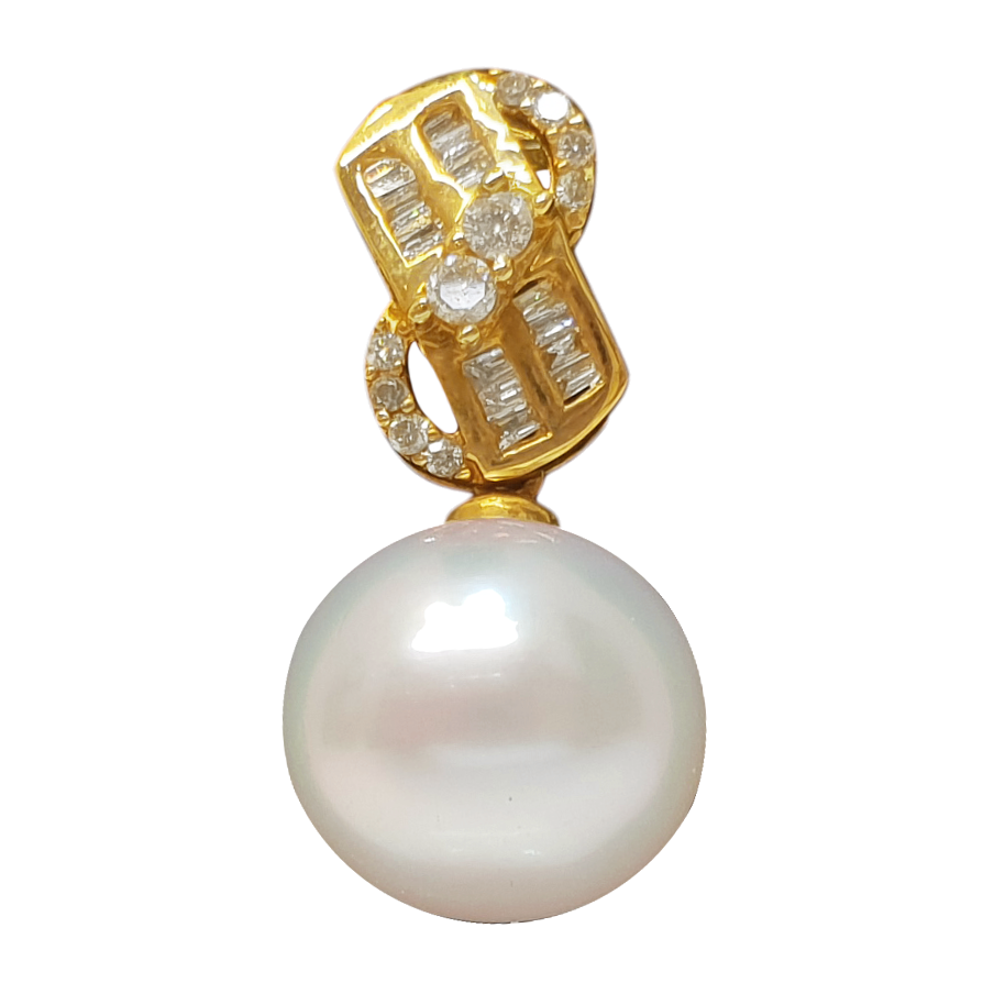 P075 – Brilliant Cut Diamonds 0,08Ct – Baguette Cut Diamonds 0,06Ct – South Sea Pearl 10,20mm