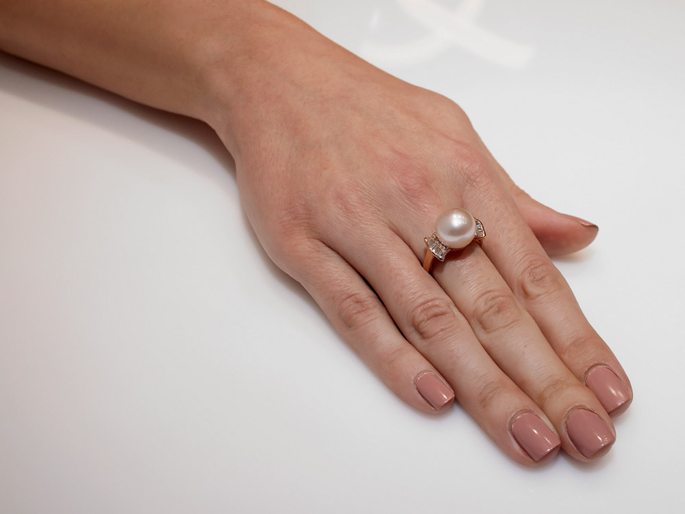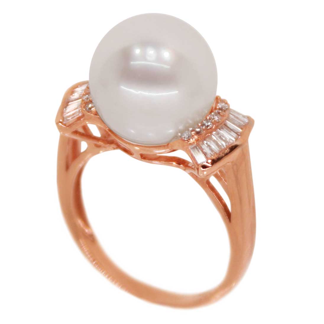 A luxurious ring with an excellent Edison pearl, sparkling baguette and brilliant cut diamonds set perfectly in 18K rose gold. Minimal and fashionable.