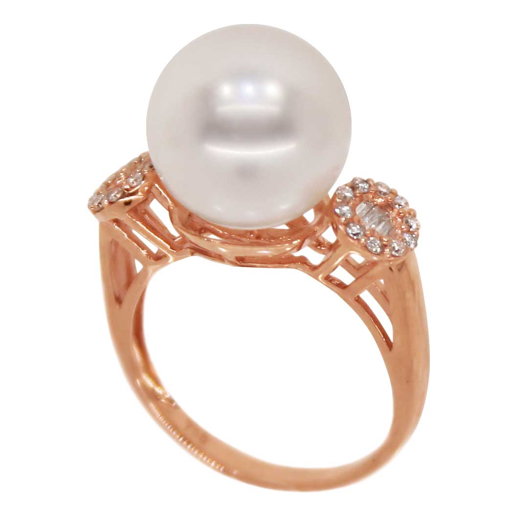 A luxurious ring with an excellent South Sea pearl and sparkling brilliant cut diamonds set perfectly in 18K rose gold. Minimal and fashionable.