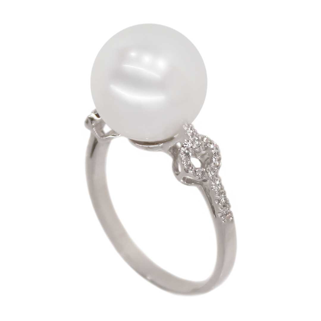 A luxurious ring with a top quality South Sea pearl and sparkling brilliant cut diamonds set perfectly in 18K white gold. Minimal and fashionable.