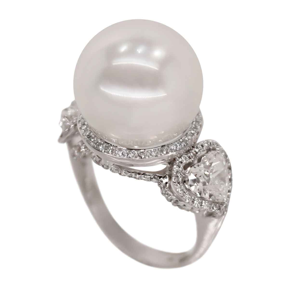 A romantic ring set in 18K white gold. A flawless South Sea pearl complimented with sparkling white brilliant cut diamonds.