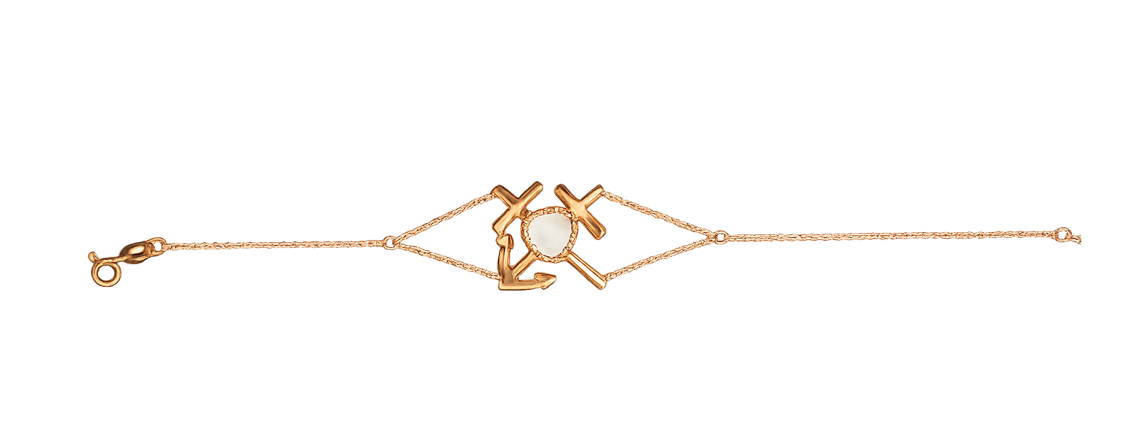 Αφεθείτε στη γοητεία της παράδοσης μέσα από ένα κομψό βραχιόλι που ξεχωρίζει για τον χαρακτήρα και την αισθητική του. Κατασκευασμένο από ροζ χρυσό, διακοσμημένο με φίλντισι, αντλεί έμπνευση από την ιστορική σημαία του Καστελλορίζου της Ελληνικής Επανάστασης, αποτυπώνοντας την καρδιά, την άγκυρα και τον σταυρό — σύμβολα με βαθιά συναισθηματική αξία. Η ζεστή απόχρωση του ροζ χρυσού αναδεικνύει τη λεπτομέρεια του σχεδίου, δημιουργώντας ένα κόσμημα που ισορροπεί ανάμεσα στο διαχρονικό και το σύγχρονο. Ιδανικό για καθημερινή κομψότητα αλλά και ως ένα ιδιαίτερο δώρο με νόημα και ιστορία.