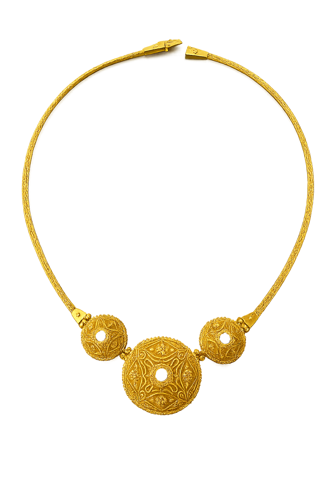 Αφεθείτε στη ζεστασιά και την κομψότητα ενός μοναδικού κομματιού. Αυτό το κολιέ από κίτρινο χρυσό, εμπνευσμένο από το παραδοσιακό σχέδιο Μπούκλα του Καστελλορίζου, αποτυπώνει με χάρη την πολιτιστική κληρονομιά και την ιστορία του νησιού. Οι καμπύλες και τα μοτίβα του χρυσού δημιουργούν ένα παιχνίδι φωτός που αιχμαλωτίζει τα βλέμματα, ενώ η ζεστή απόχρωση του μετάλλου προσδίδει διαχρονική θηλυκότητα και πολυτέλεια. Ένα statement κολιέ που ξεχωρίζει με στυλ και χαρακτήρα, ιδανικό για κάθε ξεχωριστή στιγμή.
