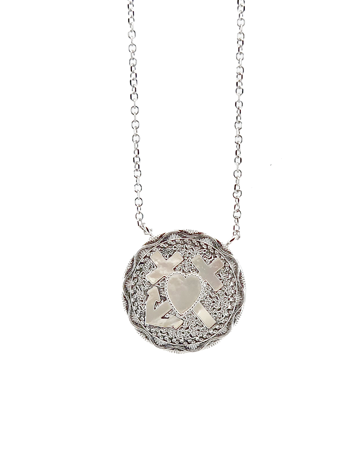 Αποκτήστε ένα μοναδικό κόσμημα που συνδυάζει παράδοση και τέχνη .Αυτό το μενταγιόν από λευκόχρυσο φιλοξενεί χειροποίητο φίλντισι, όπου με απαράμιλλη δεξιοτεχνία έχει χαραχτεί το έμβλημα του Καστελλορίζου. Κάθε λεπτομέρεια αποτυπώνει την ιστορία και την ομορφιά του τόπου, ενώ η καθαρότητα του λευκόχρυσου πλαισίου αναδεικνύει το φινετσάτο αυτό σχέδιο. Ένα κόσμημα-φόρος τιμής που φοριέται με υπερηφάνεια και ψυχή.