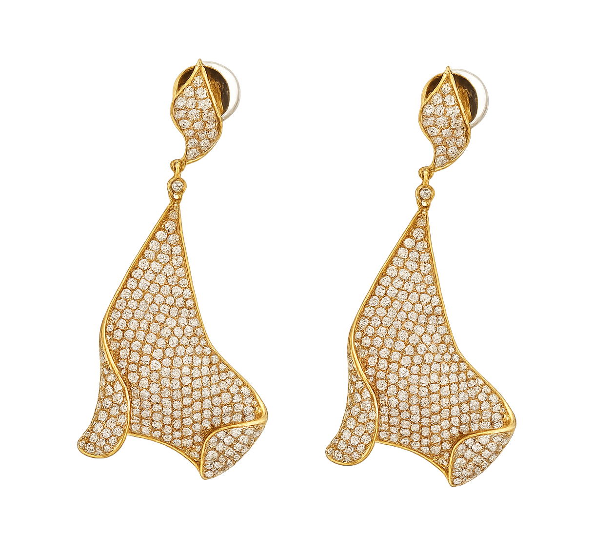 Ακαταμάχητα σκουλαρίκια από ροζ χρυσό που συνδυάζουν την αρμονία της τέχνης με τη λάμψη των ροζ διαμαντιών. Ο οργανικός, ρευστός σχεδιασμός τους μοιάζει να αιωρείται, ενώ οι εκατοντάδες λαμπερές πέτρες δημιουργούν ένα εκθαμβωτικό παιχνίδι φωτός. Ένα κομψό και μοναδικό κόσμημα που προσθέτει μια νότα ρομαντισμού και πολυτέλειας σε κάθε εμφάνιση, ιδανικό για ξεχωριστές στιγμές γεμάτες λάμψη.
