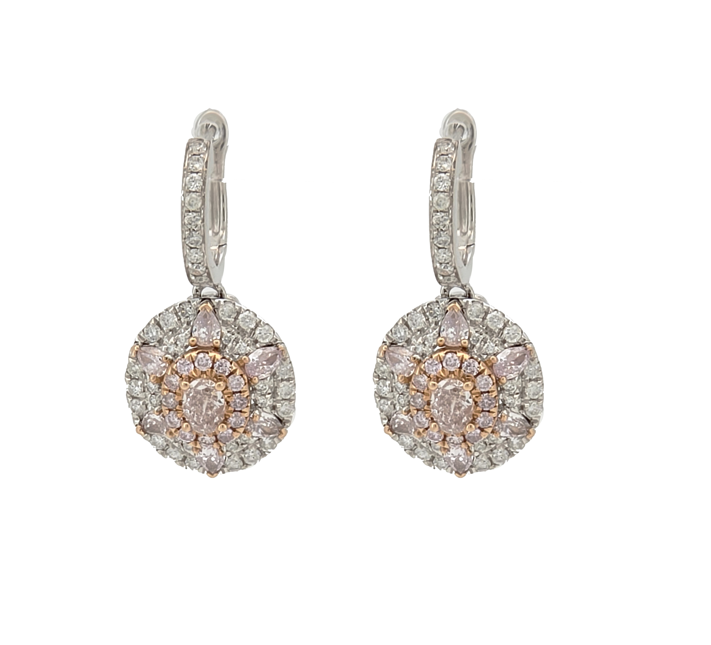 DE032- Σκουλαρίκια με Ροζ Διαμάντια Oval cut 0.32 cts-Pear cut 0.60cts- Round Cut 0.20 cts- Λευκά Διαμάντια Mix shape Cut 0.58 Cts