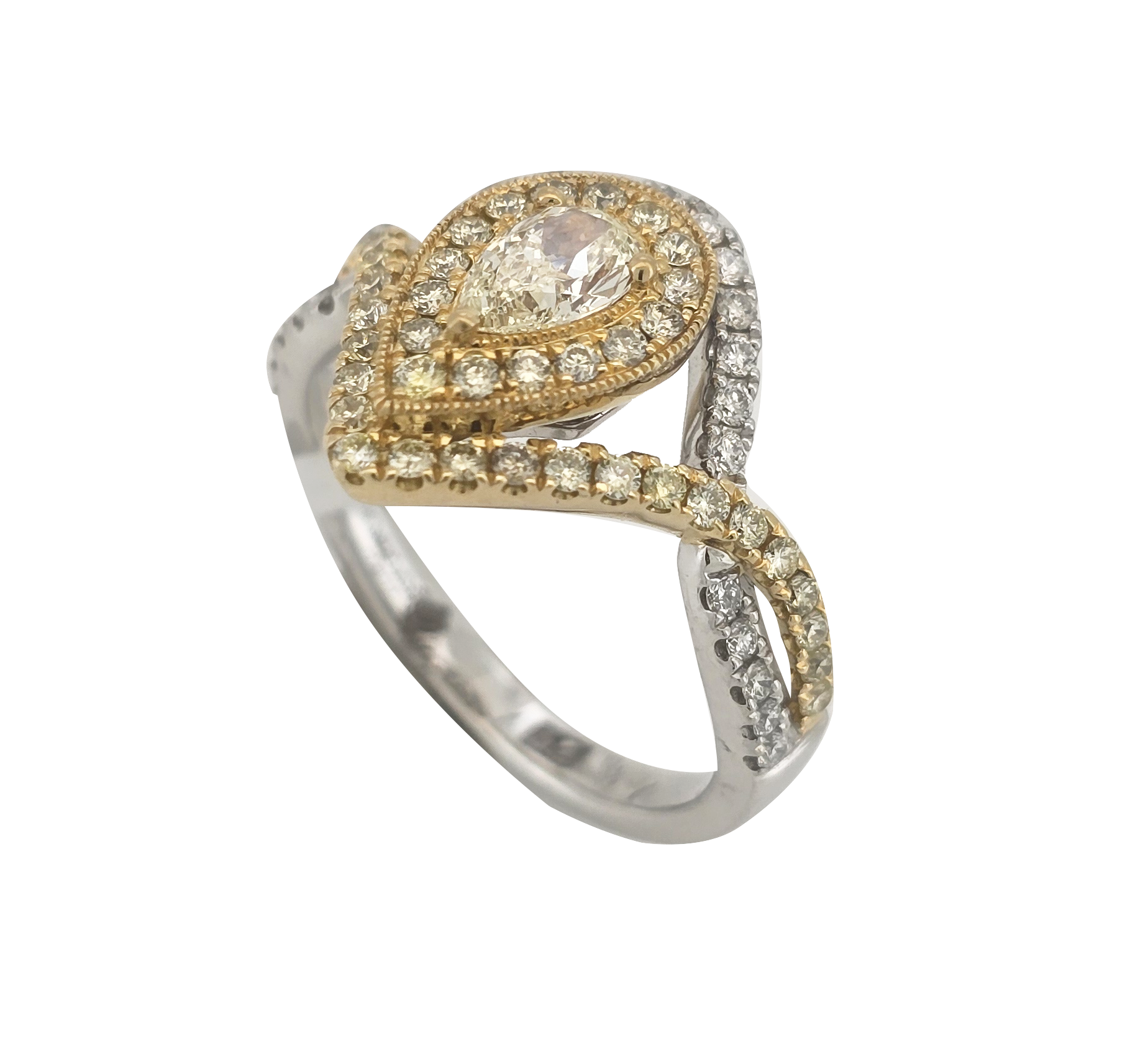 DR020- Δαχτυλίδι με Κίτρινα Διαμάντια Pear Cut 0.40 Cts- brilliant Cut 0.43 Cts-Λευκά Διαμάντια 0.21 Cts