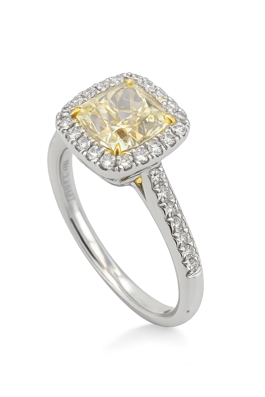 DR056- Δαχτυλίδι με Κίτρινα Διαμάντια Cushion Cut 2.02 Cts- Λευκά Διαμάντια Brilliant Cut 0.74Cts