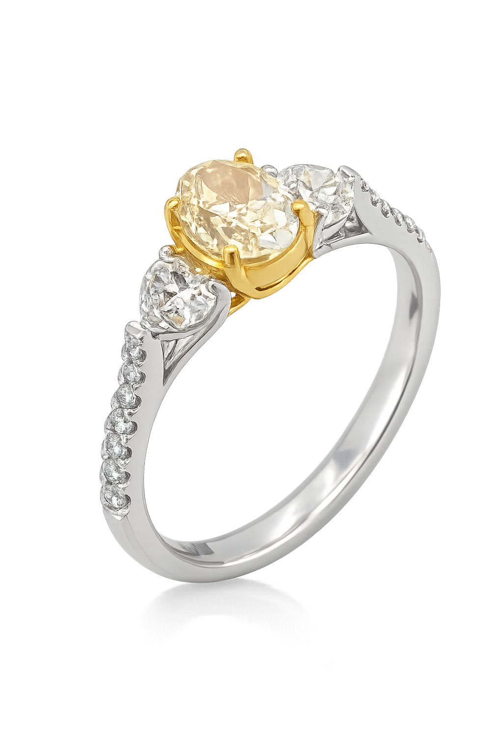 DR053- Δαχτυλίδι με Κίτρινα Διαμάντια Oval Cut 0.91 Cts- Λευκά Διαμάντια Heart Cut 0.61 Cts-br 0.12 Cts