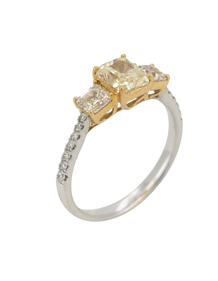 DR055- Δαχτυλίδι με Κίτρινα Διαμάντια Cushion 0,62 cts- Radiant cut 1,03 cts- Λευκά Διαμάντια 0,12 cts