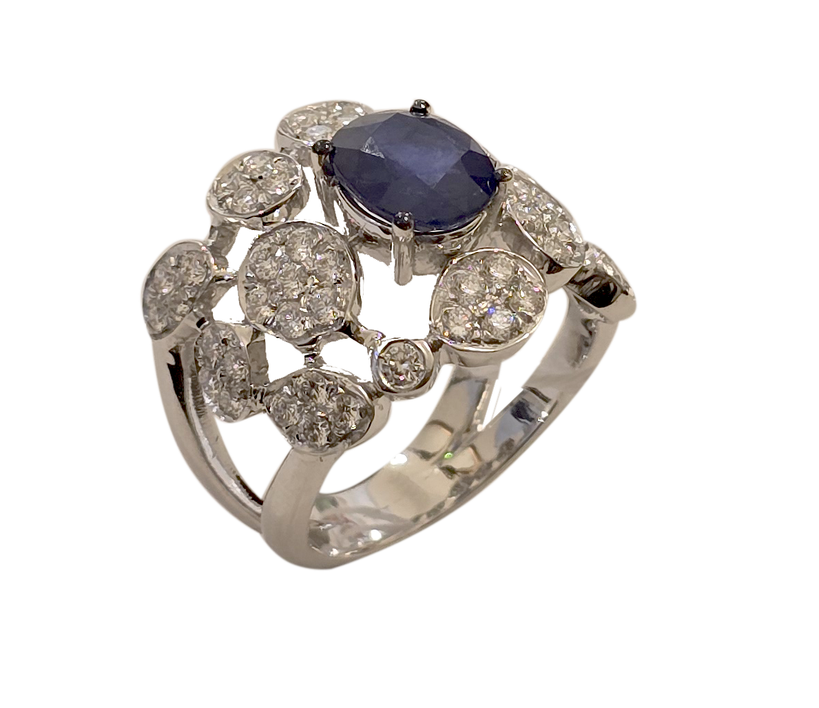 DR027- Δαχτυλίδι με Ζαφείρι 1,13cts- Λευκά Διαμάντια 1,17 cts