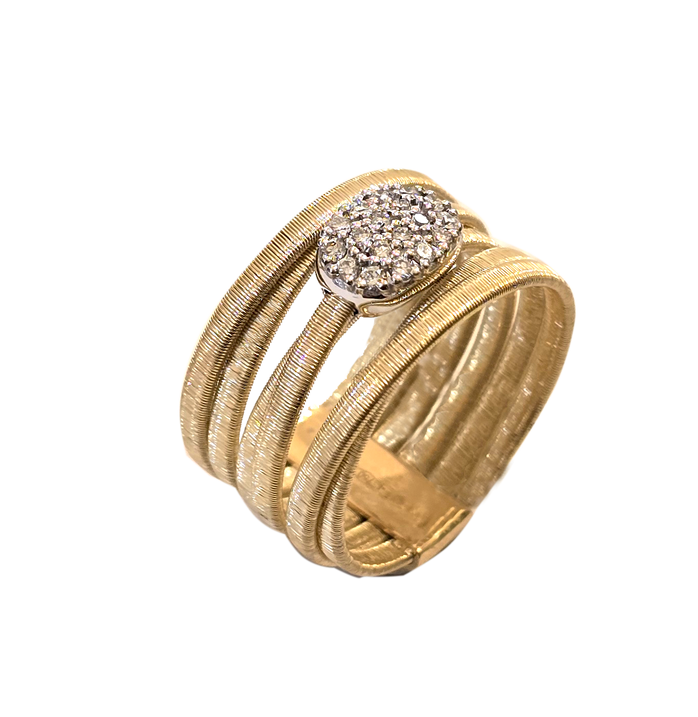 Φορέστε την κομψότητα με αυτό το δαχτυλίδι σε σχέδιο τρίβερο από κίτρινο χρυσό, διακοσμημένο με λαμπερά λευκά διαμάντια που αιχμαλωτίζουν το φως σε κάθε κίνηση. Ένα κόσμημα που συνδυάζει την κλασική χάρη με μοντέρνα φινέτσα, προσφέροντας μοναδική λάμψη και διακριτική πολυτέλεια σε κάθε εμφάνιση.