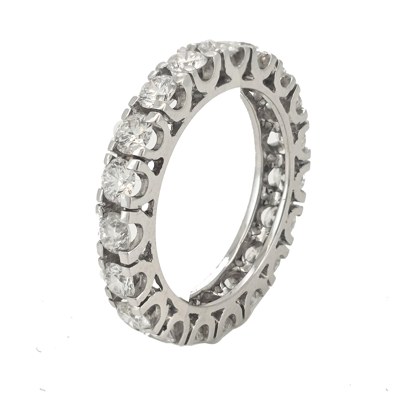 Αναδείξτε τη λάμψη της κομψότητας με αυτό το ολόβερο δαχτυλίδι, διακοσμημένο με εκθαμβωτικά λευκά διαμάντια σε κοπή brilliant. Κάθε πέτρα είναι προσεκτικά τοποθετημένη ώστε να αντανακλά το φως από κάθε γωνία, δημιουργώντας ένα εντυπωσιακό αποτέλεσμα διαρκούς λάμψης. Ένα διαχρονικό κόσμημα που συμβολίζει την αιώνια φινέτσα και αποτελεί ιδανική επιλογή για ξεχωριστές στιγμές αλλά και για καθημερινή πολυτέλεια.