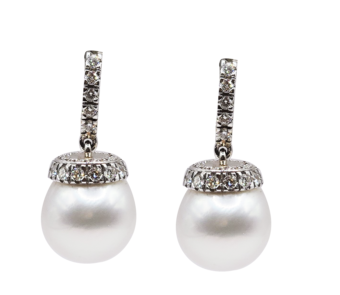 E019WW – Λευκά Διαμάντια 0,13Ct – Μαργαριτάρια Νοτίων Θαλασσών 13-14mm