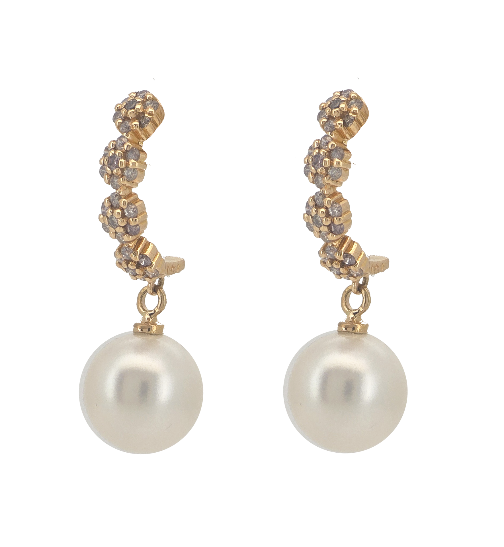 E118 – Καφέ Διαμάντια 2,10Ct – Μαργαριτάρια Νοτίων Θαλασσών 12-13mm