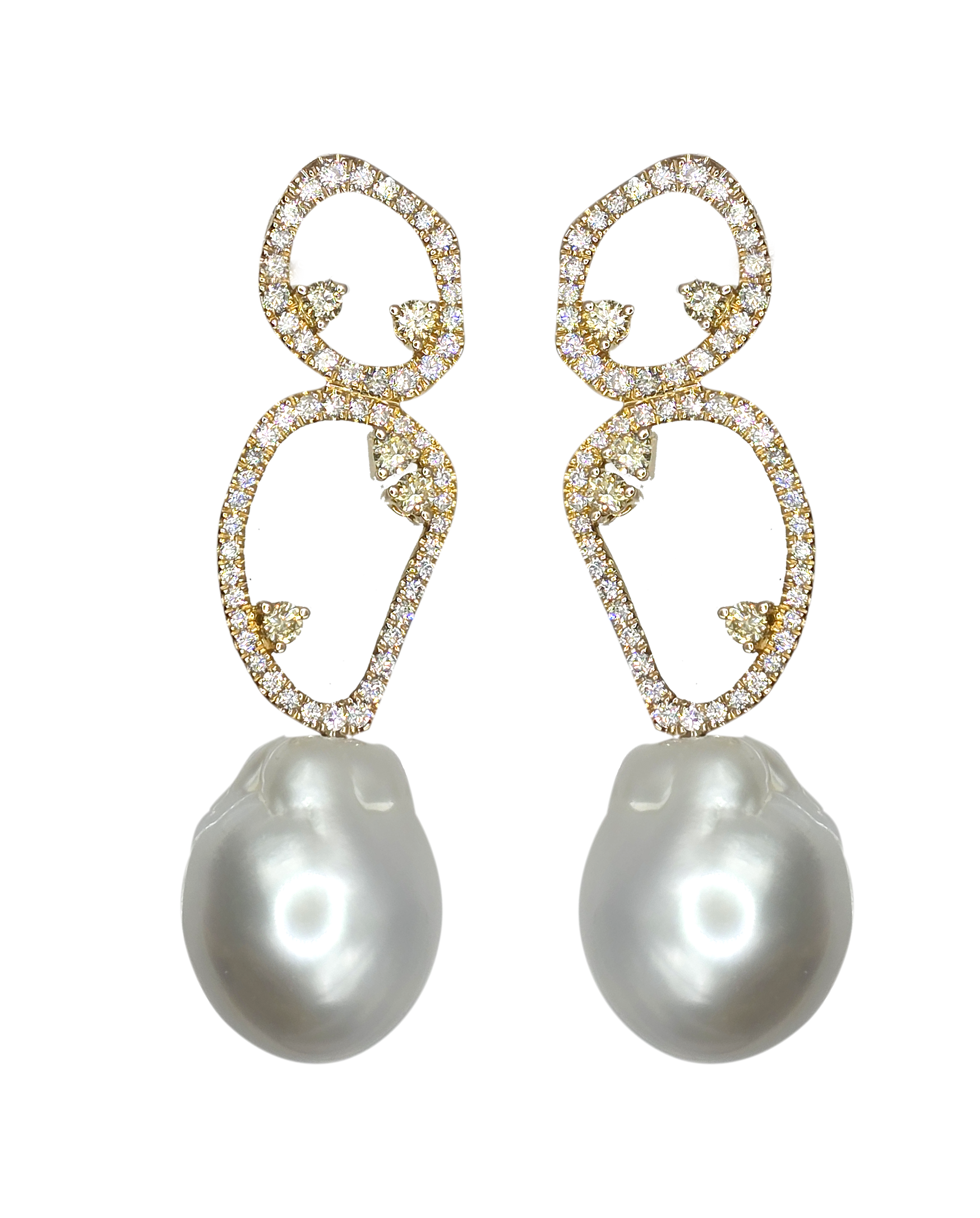 E267- Σκουλαρίκια με Λευκά Διαμάντια 1,30cts-Μαργαριτάρια Barroque Νοτίων Θαλασσών 12-13 mm