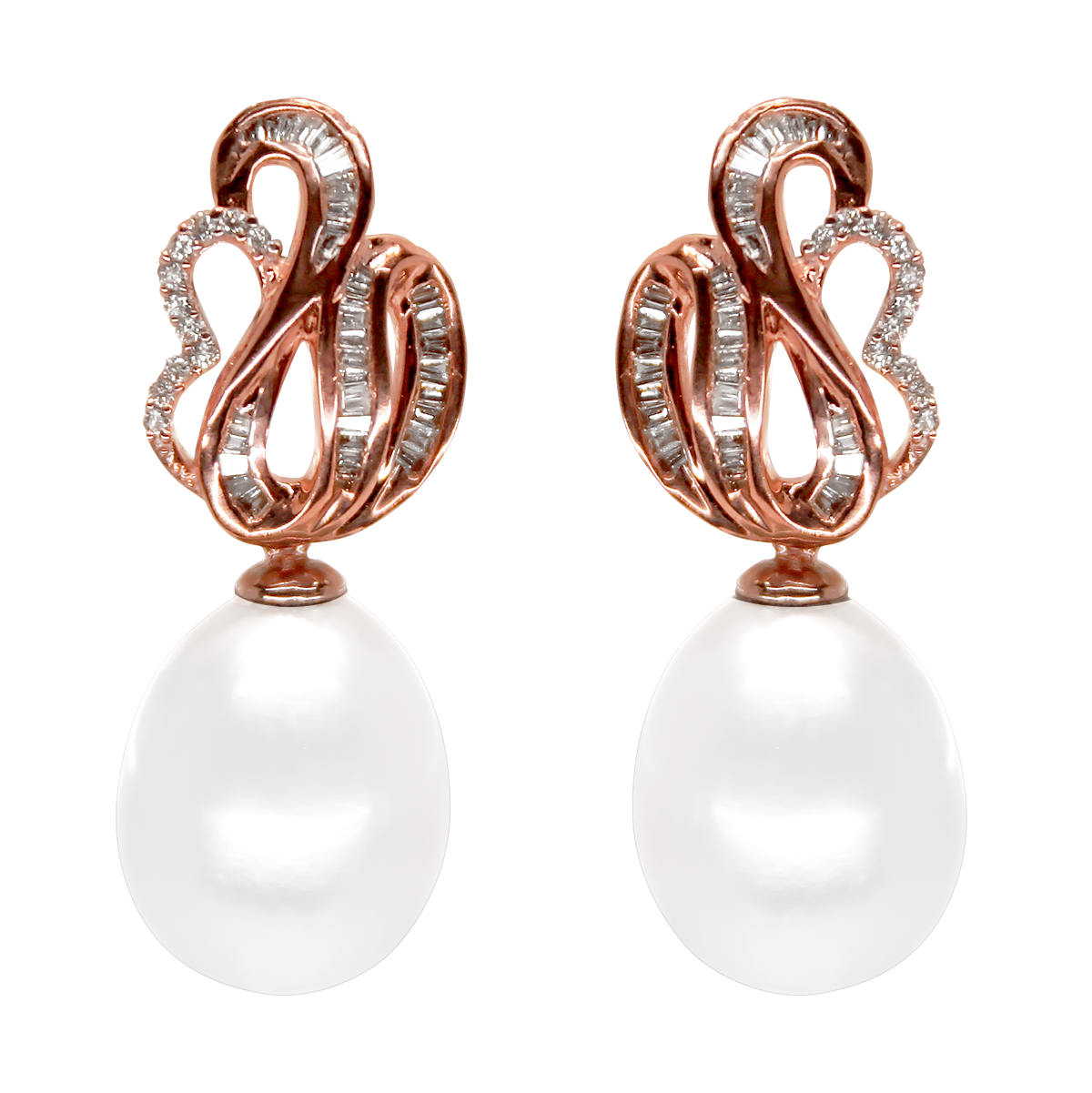 E269- Σκουλαρίκια με Λευκά Διαμάντια Brilliant cut 0,19cts, Baguette cut 0,52cts- Μαργαριτάρια Νοτίων Θαλασσών 12-13mm