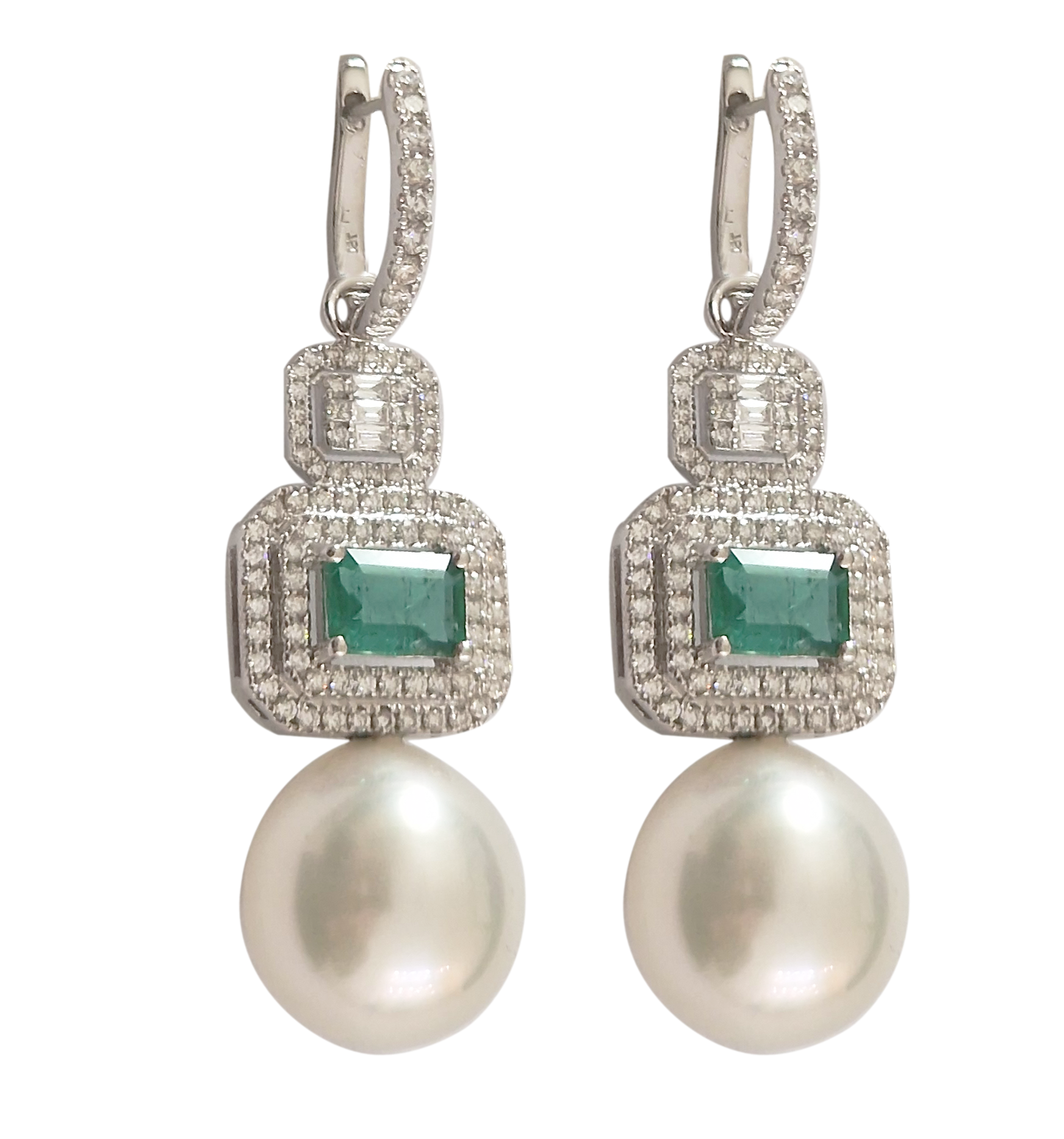 E270- Σκουλαρίκια με Σμαράγδια 1,75cts- Λευκά Διαμάντια 1,36cts – Μαργαριτάρια Νοτίων Θαλασσών 13-14mm