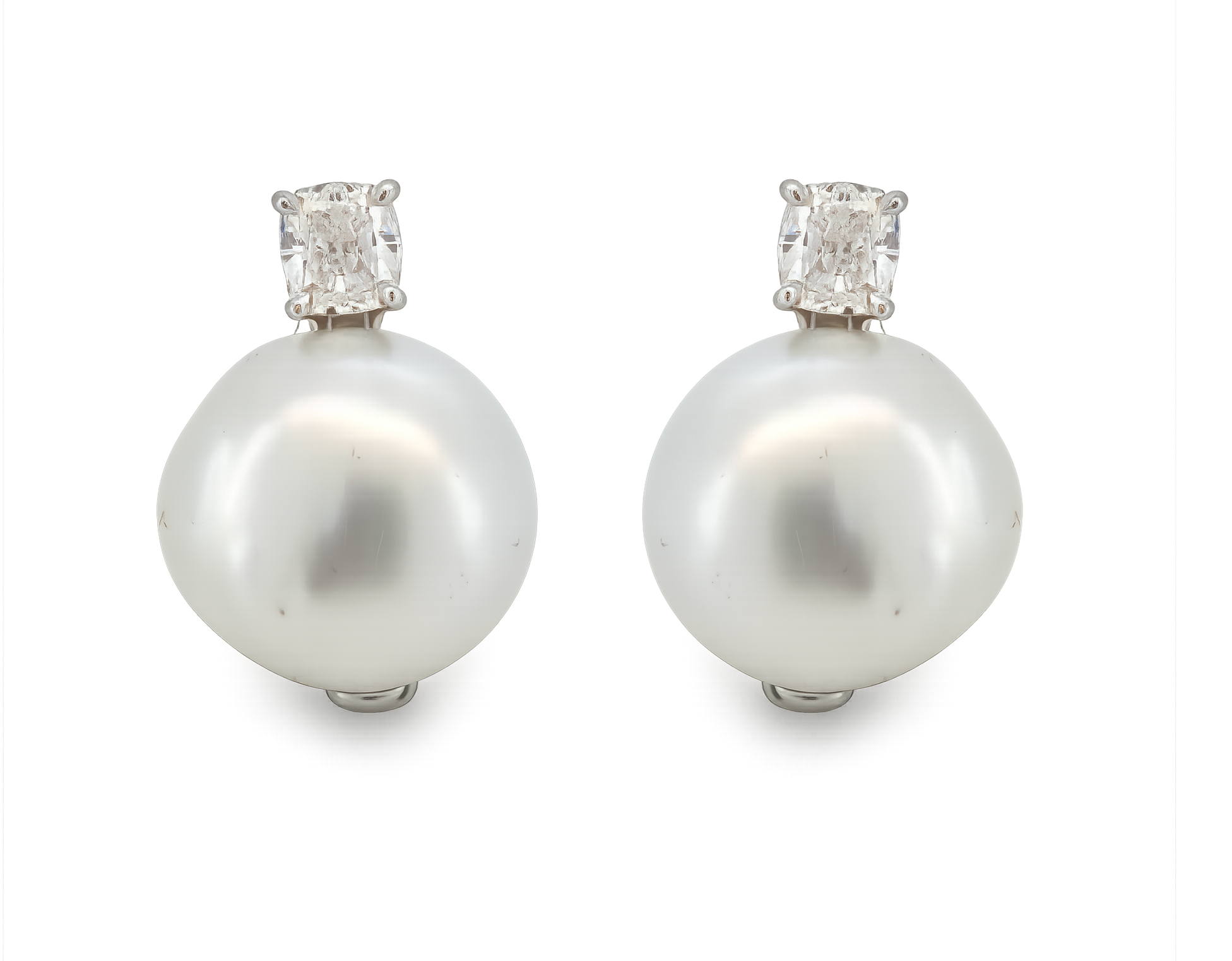 Προϊόν: E241- Σκουλαρίκια με Μπαροκ Μαργαριτάρια Νοτίων Θαλασσών 16-17 mm- Λευκά Διαμάντια Cushion Cut 2.00 Cts