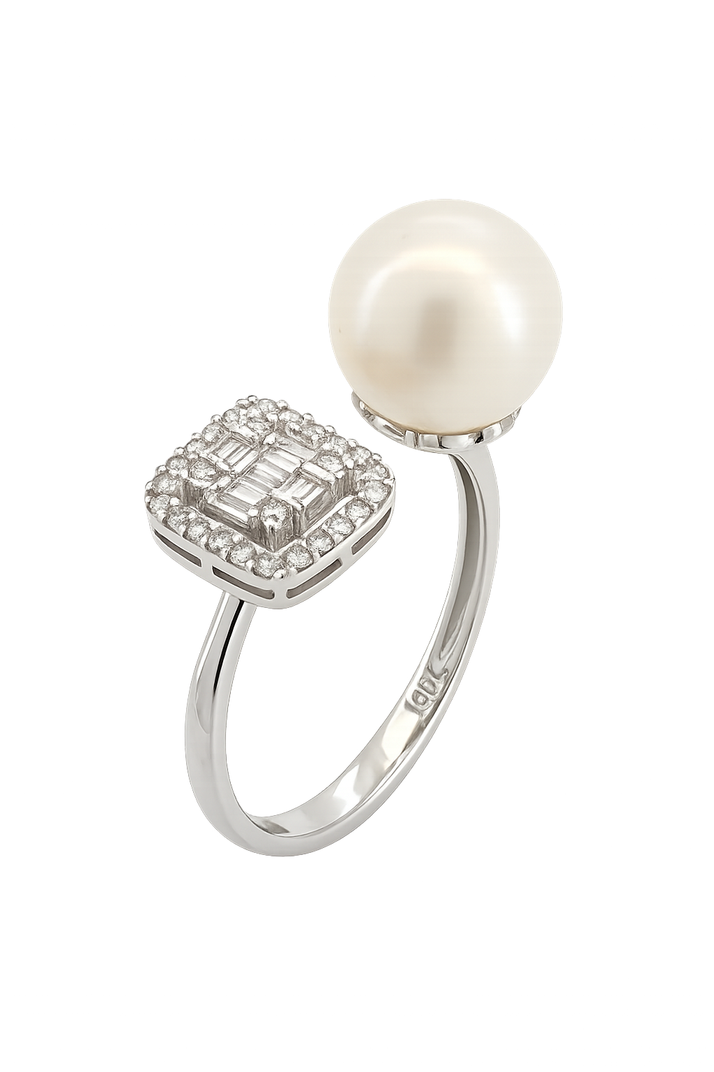 E312- Δαχτυλίδι με Μαργαριτάρι Νοτίων Θαλασσών 10-11 mm- Λευκά Διαμάντια brilliant cut 0.16Cts- baguette cut 0.07 Cts