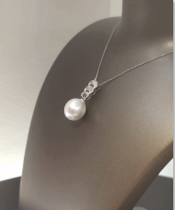 P069 – Λευκά Διαμάντια 0,04Ct – Μπαγκέτες Διαμαντιών 0,09 – Μαργαριτάρι Νοτίων Θαλασσών 12,5mm