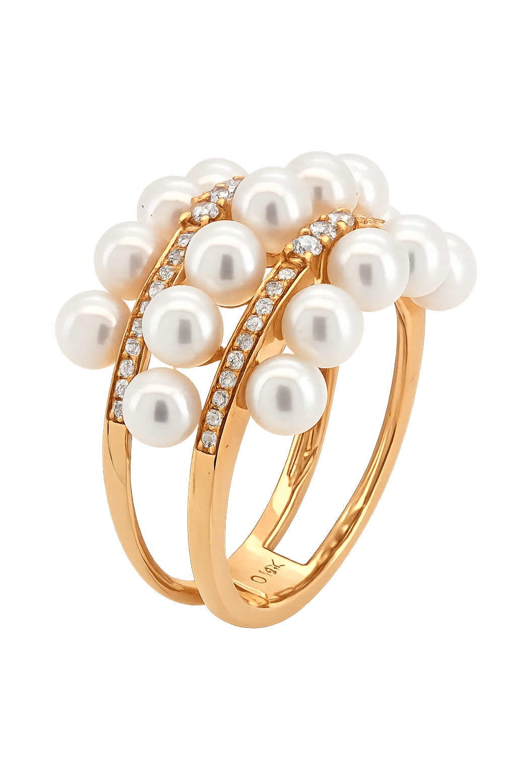 R310- Δαχτυλίδι με Μαργαριτάρια Akoya Ιαπωνίας 3-3.5 mm- Λευκά Διαμάντια 0.58 Cts